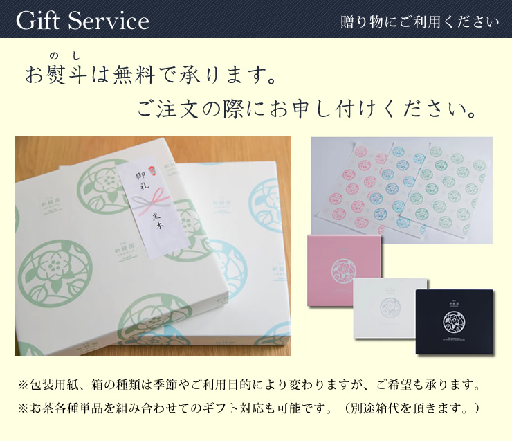 新緑園だからこそ出来る、お中元・お歳暮・内祝い・父の日・母の日・敬老の日・法事などに最適なお茶のギフトセット(贈答品)をご提供します。